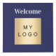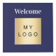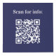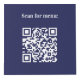 For hotel rooms, restaurant tables, rental properties. Personalize and add your business logo, and space for two QR codes. Navy blue background, white text.