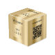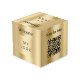 For hotel rooms, restaurant tables, rental properties. Personalize and add your business logo, and space for two QR codes. A faux gold looking background, black text.