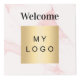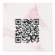 For hotel rooms, restaurant tables, rental properties. Personalize and add your business logo, and space for two QR codes. Pink marble print as background, Black text.