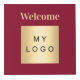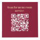 For hotel rooms, restaurant tables, rental properties. Personalize and add your business logo, and space for 4 QR codes. Burgundy background, yellow text.