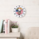 Brighten up your kitchen or dining area with this charming clock featuring a graphic of an American chef winking with a welcoming smile. The playful design, complete with the word "Welcome" prominently displayed, makes this clock not only a functional timepiece but also a delightful piece of decor that will bring warmth and personality to your home.
