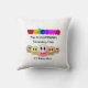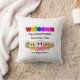 Fun customizable Teacher's Welcome to My Class Throw Pillow showing a bright colorful WELCOME followed by wording which reads (insert your name here)'S CLASS IS A HAPPY PLACE. This text is CUSTOMIZABLE so you can add your name and class or create your own text. There is also a group of smiling face icons to represent happy children. Use this Welcome Throw Pillow to decorate your classroom or reading den to make your kids feel at home when they come back to school and into your classroom. Matching gifts and party supplies are available.