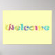 Welcome family, guests, friends, etc. with this fun, colorful, pastel poster. The word Welcome is made from a colorful blend of pastel pink, yellow, green, aqua, blue and purple. The design is printed on a pale yellow background. The background color can be customized.