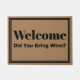 This cute and sweet doormat features the simple phrase and question "Welcome" and "Did you bring wine?" framed with two rectangular black frames printed as accents to this lovely, welcoming doormat.