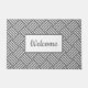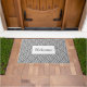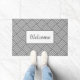 This welcome doormat is shown in a putty grey color with a stripes print design.