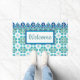 Welcome Doormat Turquoise&blue tile design