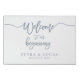 Elegant typography wedding welcome sign, in faux wrapped canvas. Sign features, chic script "Welcome to our beginning" with two template text lines for names and date in dusty blue color. Designed to match our Dusty Blue Botanical Collection.