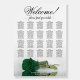 This beautiful 20 table wedding seating chart features a romantic and sophisticated design with a single long-stemmed emerald green colored rose lying on its side reflecting in a pool of water. It has space for 200 guests with 10 seats per table. The fancy script calligraphy title reads "Welcome! please find your table" with space for the names of the couple and wedding date at the bottom. Classy, elegant, stylish, and glam, this board is a great way to welcome your guests while making it easy for them to find their seats.