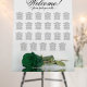 This beautiful 23 table seating chart features a modern floral design with a single long-stemmed emerald green colored rose lying on its side reflecting in a pool of water. It has space for 230 guests at with 10 seats per table. The elegant script calligraphy title reads "Welcome! please find your table" with the names of the couple and wedding date at the bottom. Romantic, graceful, classy, and glam, this chart is a wonderful way add elegance and style to your wedding reception while making it easy for your guests find their seats.