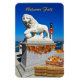 Welcome Fall! This beautiful flexible magnet features the photo image of one of two gallant white marble lions that stand guard over the entrance to the Bridge of Lions which connects downtown "Old City" Saint Augustine with Anastasia Island. The background features numerous sailboats and watercraft anchored in Matanzas Bay, which is part of the Intracoastal Waterway. Colorful fall leaves, hay bales, pumpkins, and a seasonal bow on the lantern complete the stunning coastal autumn scene. The text on the magnet reads "Welcome Fall" which may be easily deleted or edited for personalization at no additional charge. Choose small or large size magnet. Photography & Design by Glenda Motsavage, a Florida-based travel writer and author.