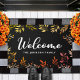 Black and white with vibrant autumn colors customizable doormat with "Welcome" in a modern script writing with your family's last name below in a simple, clean font.