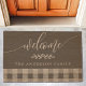 Welcome Family Name Buffalo Plaid Fiber Doormat