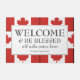WELCOME Flag of CANADA Doormat. Stylish, patriotic WELCOME door mat with the wording WELCOME & BE BLESSED ALL WHO ENTER HERE (EXCEPT TRESPASSERS). The background is the MAPLE LEAF flag of CANADA. All text is CUSTOMIZABLE so you can amend the wording to suit your needs. Matching gifts are available. This would be a great gift for anyone celebrating Canada Day, also Christmas and birthdays.