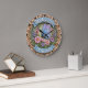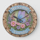 Invite high-energy warmth and hospitality into your home with the Welcome Friends Butterfly Garden clock. This exquisite timepiece features a high-definition graphic designed with a stunning, multi-layered sculptural effect. The artwork centers on a majestic lavender and blue butterfly resting among a lush bouquet of pink, purple, and blue spring blossoms. The scene is elegantly framed by soft blue banners proclaiming "WELCOME FRIENDS" and is encased in a sophisticated, cream-colored scrollwork border. While the design masterfully mimics the heavy dimensional depth of hand-carved stone or molded resin with soft matte finishes, this is a durable high-definition graphic application on a premium clock face. It serves as a prestigious and heartwarming focal point for any entryway, living room, or guest suite.