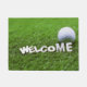 Welcome golfer with golf ball on green grass Doormat