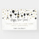 Welcome your guests to your New Year's Eve Party or use as a backdrop for your virtual get together with this funky background with a pattern of cocktails, balloon, champagne, cake and star and confetti in a mix of gold and black bordering the top edge, and Happy New Year in an informal set typography with a backdrop of white which can be changed to another color if you wish via the customise link. The rest of the text with your welcome message, names and Enjoy The Party can be easily personalised to your own requirements.
