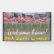 Red, white, and blue American flags make this a perfect banner to hold when your warrior comes home. Personalized! Simply change the rank and name!