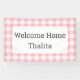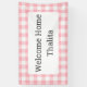 Customizable Welcome Home banner features a classic pink and white buffalo check border with your text in a white rectangle in the center. Personalize it in the sidebar.