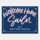 Welcome your sailor home in style and share your joy with all who pass by. This sign is handlettered with “Welcome Home Sailor” and a space for your sailor's name or other message below. Great to use as a handheld sign or staked out in your front lawn. For “Mommy”, “Daddy”, or other deployment sign options, check BrittCo Designs Zazzle shop.
