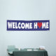Welcome Home banner with a red heart in place of the "O" in HOME. White lettering on dark blue background.