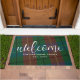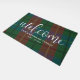 Welcome in Big Script - Family Name Plaid Pattern Doormat