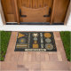 This artistic doormat in modern Bauhaus style combines abstract geometry with a humorous message. The mat is divided into three dynamic sections, interspersed with vertical texts such as “WELCOME-ISH” and “It depends on who you are.” The beige banner at the bottom invites personalization - add your name or a creative message, like “The Miller Way.”