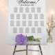 This beautiful 22 table seating chart will add style and class to your wedding reception. The gorgeous modern floral design features a single long-stemmed light purple or lavender colored rose lying on its side reflecting in a pool of water. It has space for 220 guests at with a traditional layout and 10 seats per table. The elegant script calligraphy title reads "Welcome! please find your table" with space for the names of the couple and wedding date at the bottom. Romantic, graceful, and glam, this chart is a wonderful way to help your guests find their seats.
