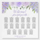 This elegant 17 table wedding seating chart features a rustic boho chic floral design hand painted watercolor roses and blossoms in shades of dusty purple, lilac, and lavender. The title reads: Welcome! Please find your table in fancy script calligraphy. The chart has space for 170 guests with 10 seats per table. There is space for the names of the couple and wedding date below. Wonderful way to welcome your guests to your wedding reception, while helping them to find their tables.