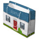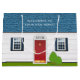 Welcome your new client to their home with loads of goodies filling this client gift bag that looks like a house, with blue roof, red door, and white wood panels and the year over the door. Back of the box features your sentiment, name, and company logo. Great for the real estate agent or other person who wishes to treat their customer or client with an alternative to a gift basket. Items for the box that feature your logo, such as cookies and other goodies, can also be found in my store, One Stop Business Shop (www.Zazzle.com/OneStopBusinessShop.