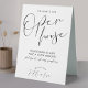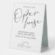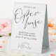 Add the finishing touch to your Open House event with a custom Welcome table top sign. This minimalist black and white real estate sign features modern script fonts that read 'Open House' and 'We hope you Fall in Love' as well as space for your custom text and details. You can even add your realtor details to this Open House table tent sign.