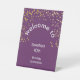 Her 40th Welcome Sign: Gold glitter/purple pedestal with custom name & date. Sturdy stand and luxury milestone decor.