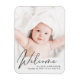 Announce your sweet baby's birth with this keepsake magnet featuring his or her photo with "Welcome" written on top in an elegant script. Underneath you can add his or her name, birth date and birth stats in modern typography.