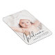 Announce your sweet baby's birth with this keepsake magnet featuring his or her photo with "Welcome" written on top in an elegant script. Underneath you can add his or her name, birth date and birth stats in modern typography.