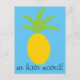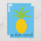 A large and colorful graphic pineapple sets a welcoming tone for your new home. We have moved is written in a breezy and happy font. The details are on the back. Easy to customize. No one will miss this bright ocean blue moving post card.