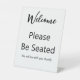 Welcome Please Be Seated White and Black Script Pedestal Sign