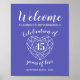 Welcome guests to your 45th sapphire wedding anniversary party with this modern simple line art heart poster. The design features white typography in script font and a line art heart gemstone with the words welcome celebration of 45 years of love on a blue background. Personalize with your own names, anniversary year and wedding date underneath. The 45th wedding anniversary is associated with the gemstone blue sapphire and the heart symbolizes love. Other matching anniversary items available. Line art and design by www.mylittleeden.com on zazzle.