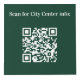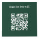 For hotel rooms, restaurant tables, rental properties. Personalize and add your business logo, and space for 4 QR codes. Dark green background. White text.
