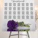 This beautiful 28 table wedding seating chart has room for 280 guests with 10 seats per table. The timeless, classic floral design features a single long-stemmed deep royal purple colored rose lying on its side reflecting in water. The title reads: Welcome! Please find your table and is written in elegant script calligraphy. There is space for the names of the couple and wedding date below. Romantic, sophisticated, and chic, this seating chart is a wonderful way to welcome guests to your reception while making it easy for them to find their seats.
