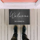 Modern Elegant Calligraphy Welcome Script with black wooden background.
