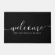 A Modern door mat with script welcome with your family name , name to create a welcoming entry way to your home. Large mat.
