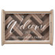 Welcome Script Faux Wood Herringbone Family Name Serving Tray