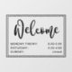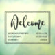 Opening hours window cling featuring black or custom color text on a transparent background with the text "welcome" in an elegant calligraphy script font.