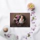 Elegant birth announcement cards feature a full bleed horizontal or landscape oriented photo with "welcome" overlaid in rose gold foil calligraphy script lettering. Personalize with baby's name and birth stats beneath, and add three additional photos to the back, along with a personal message.