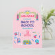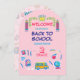 "School’s cool let’s rule" motivation quotes, back to school, 2nd Grade / Second grade, WELCOME / GRADUATION, BACK TO SCHOOL / I LOVE SCHOOL GRAPHIC DESIGN / Kids Party Decoration, Gifts, Colorful, Cartoon. Happy first day of School! Teacher Day, Gifts Graduation for boys and girls, Announcements Graduation, Student Life, Captions Graduation, Card, Teacher Messages, Graduation Ceremony, First Grade, Welcome, Graduation Decorations, Graduation Quotes. Modern Design with School Supplies Retro Hand Drawn icons, pencil, pen, brush, crown, schoolbag apple, books, notebook, Globe, school bus and more, on pink cute background - for two sides (front and back), with Smiley icon and text template. Personalize them by adding Date, School Name, Family name or wishes text.