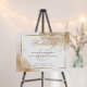 Elegant Wedding Welcome Sign - Stunning soft coffee brown marbled watercolor with glitzy gold highlights Design by WhimsicalArtwork™
