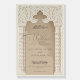 Usher your guests into your Nikah ceremony with this majestic welcome sign, adorned with the elegance of Islamic architecture. It features a golden arch that beautifully frames the welcoming script, while intricate arabesque patterns cascade down the sides, complemented by chevron columns. The design's color palette of gold, cream, and ivory sets a luxurious tone, as the card reflects the light, creating a shimmering effect that captures the essence of your special day. Perfect for greeting guests at the venue entrance, this sign is not only a guide but a piece of art that enhances the celebratory atmosphere.