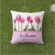 Welcome guests to your home this spring with this pretty spring flower-designed outdoor pillow. This pillow features pink tulips on the front with a watercolor pink design on the back. You may buy as shown with the outdoor fabric or pick an indoor fabric for interior use.
