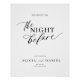 Elegant simple minimal clean black and white "the night before" rehearsal dinner sign poster featuring a classy stylish chic trendy calligraphy script.