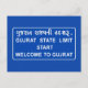 This is a real road sign from India welcoming to Gujarat. Visit our website. We have a large collection of cool & funny real signs from all over the world.