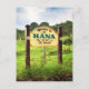 Maui Hawaii road sign. Welcoming visitors to the historic town of Hana after the long winding scenic drive along Maui's lush tropical coast scattered with waterfalls.